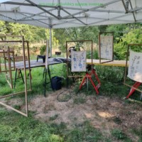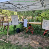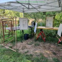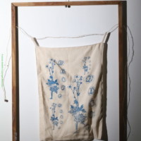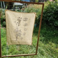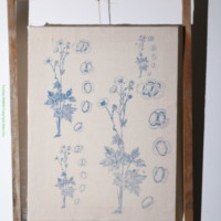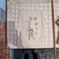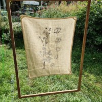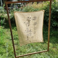 Nous avons réalisés différents tirages en sérigraphie sur encre noire et bleue, sur papier et sur lin :