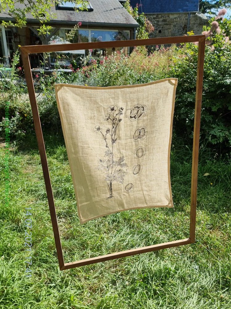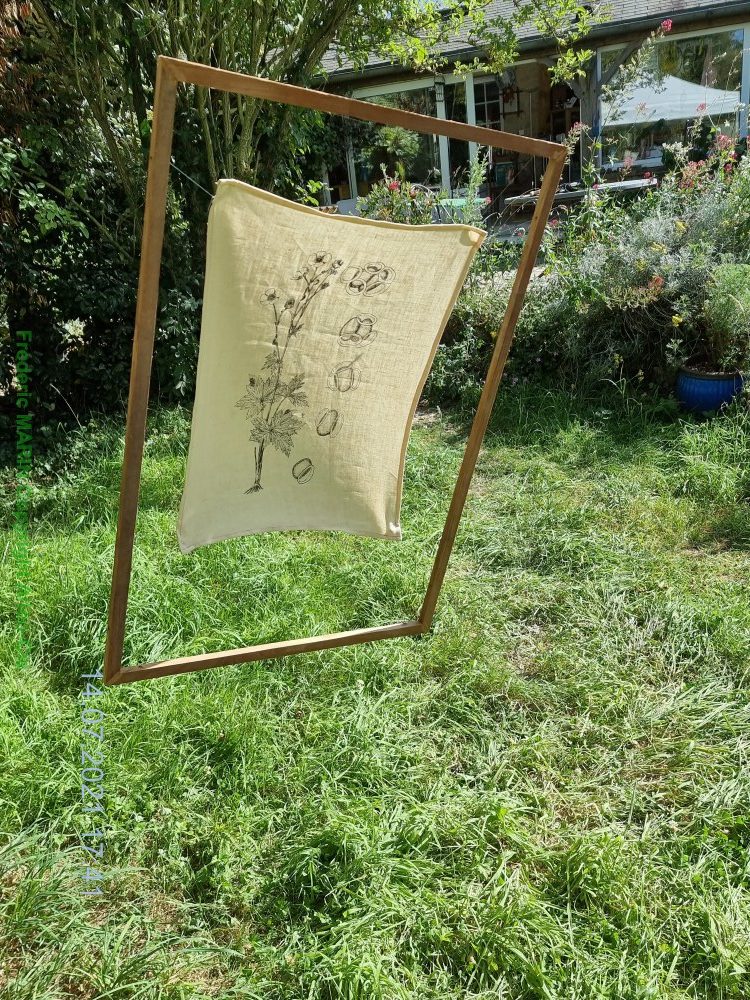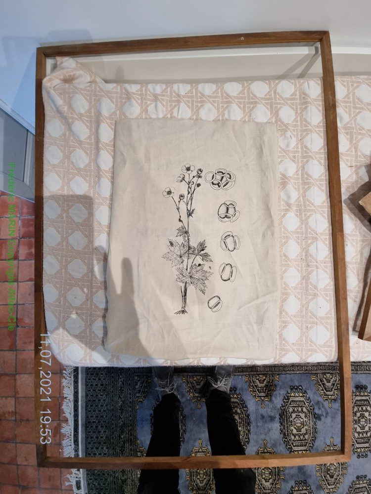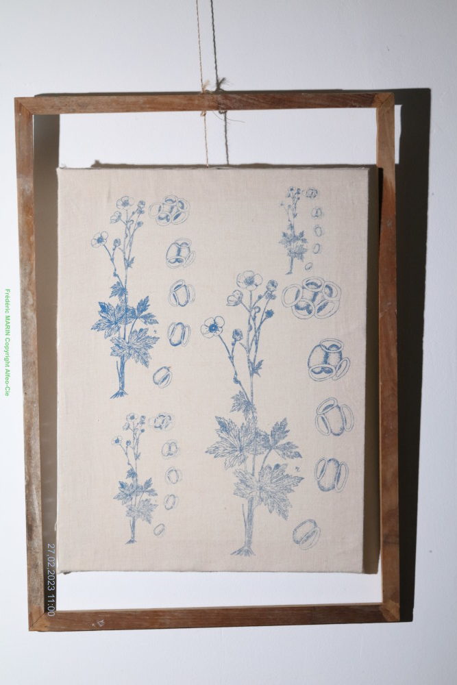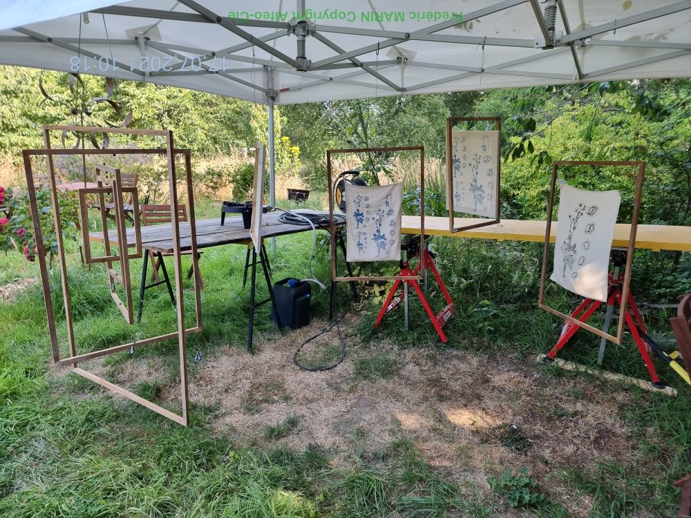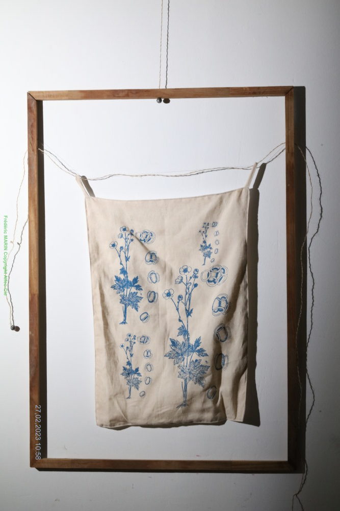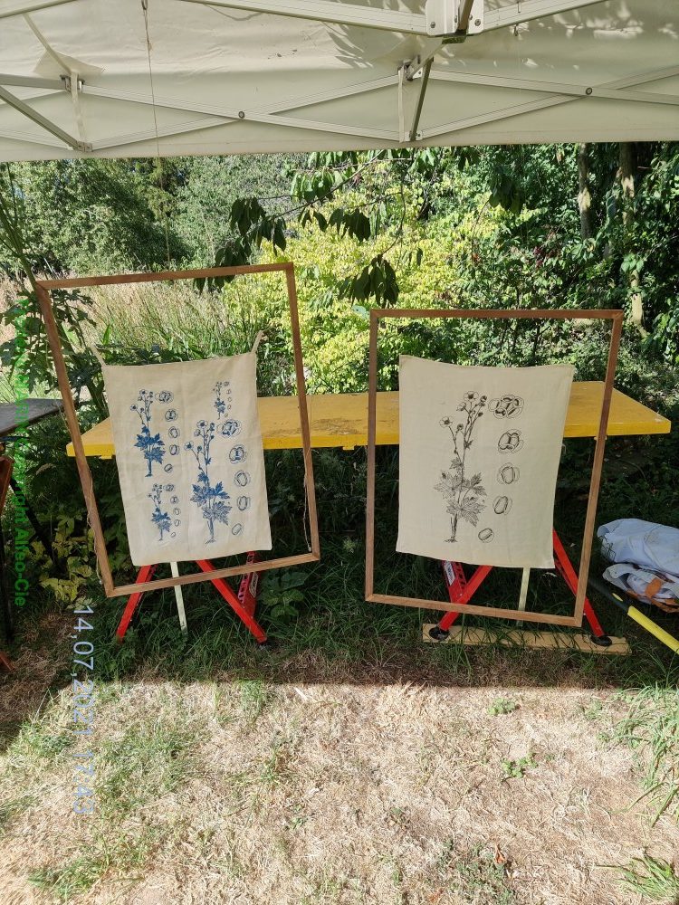 Nous avons réalisés différents tirages en sérigraphie sur encre noire et bleue, sur papier et sur lin :