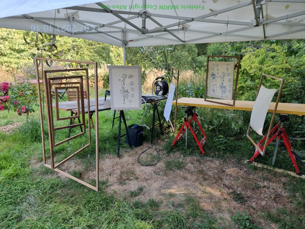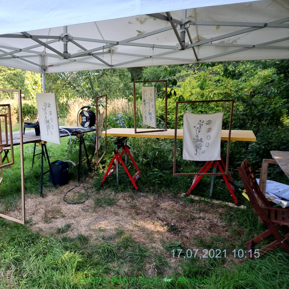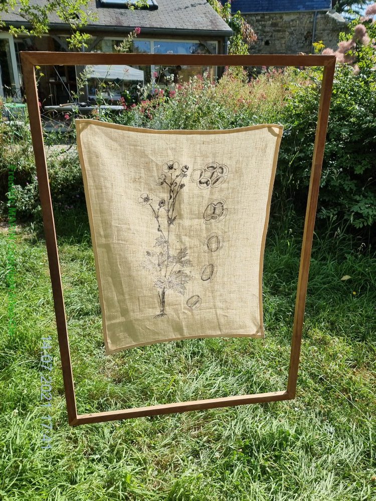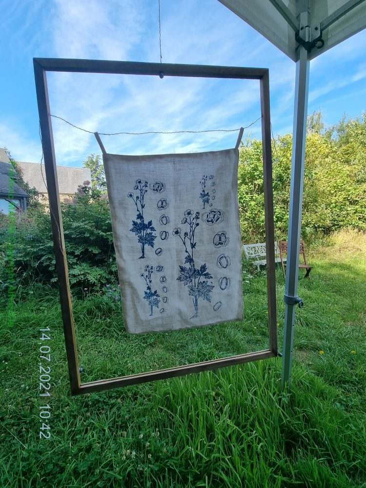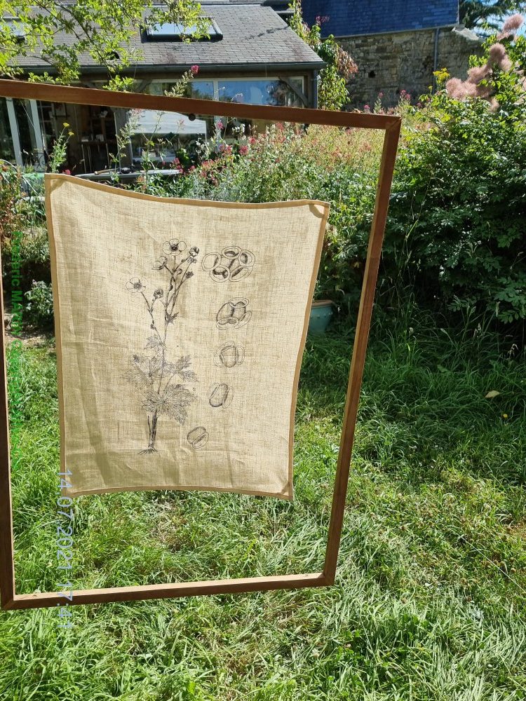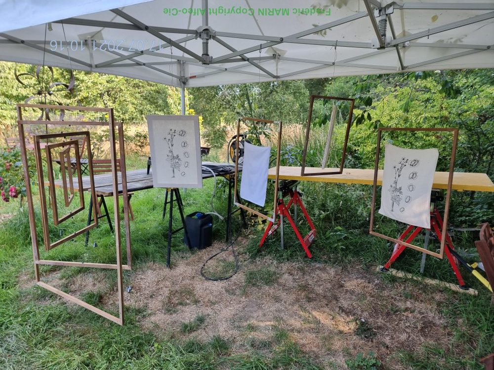 Nous avons réalisés différents tirages en sérigraphie sur encre noire et bleue, sur papier et sur lin :